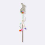 Fabricada em lonita metalizada, fitilhos variados e vareta de madeira.